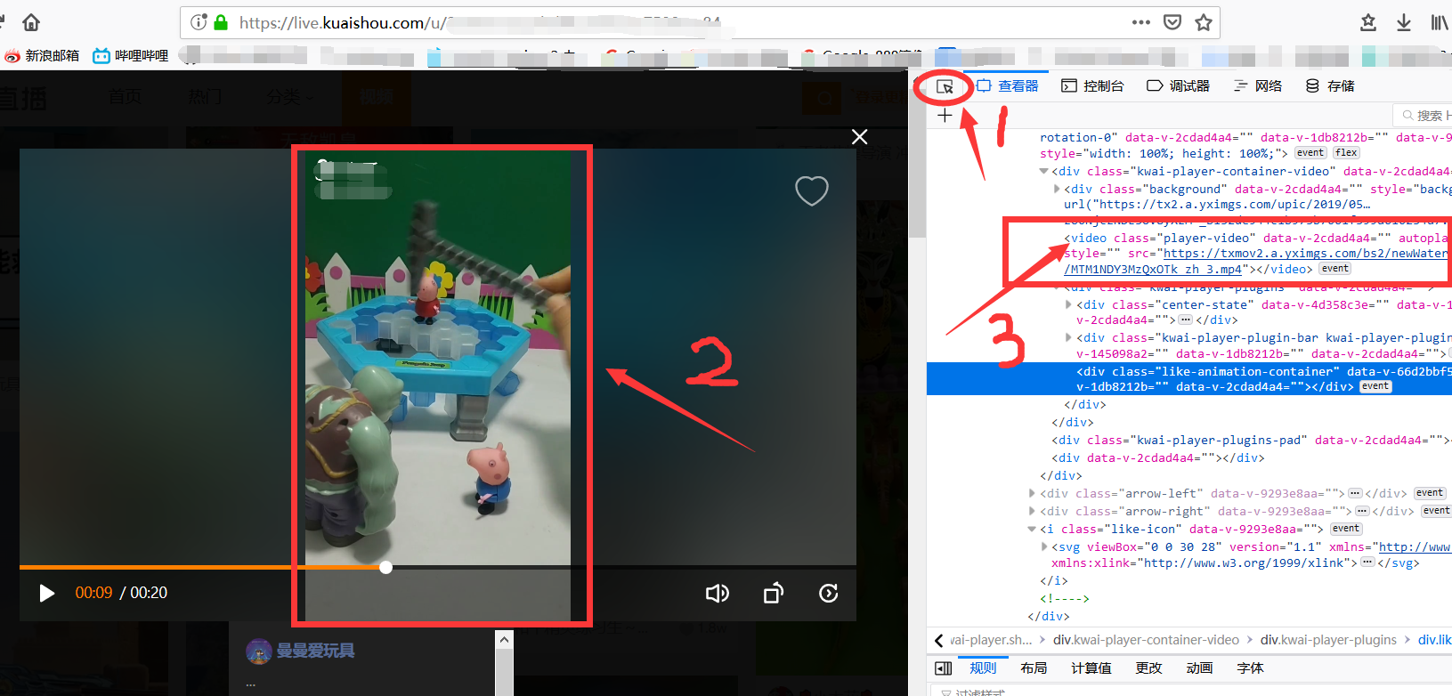 F12,从页面中选择一个元素 - 在页面中点中视频